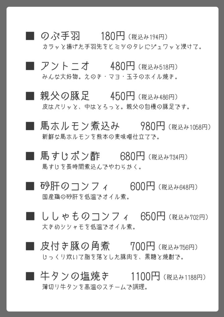 お持ち帰りメニュー